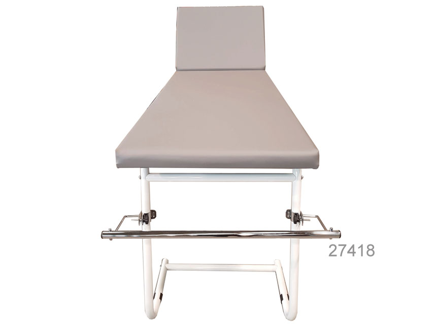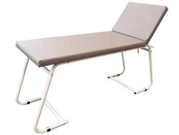 Lettino da visita con struttura tubolare in alluminio. Materassino in skay grigio, schienale regolabile in varie posizioni max 45°. Fornito smontato.• Dimensio