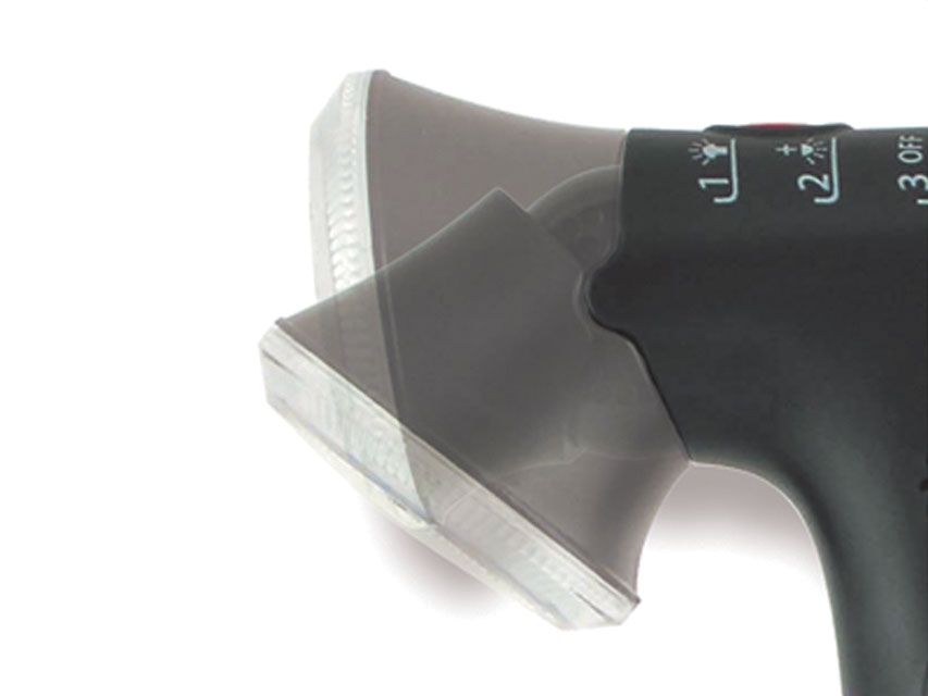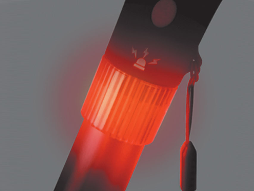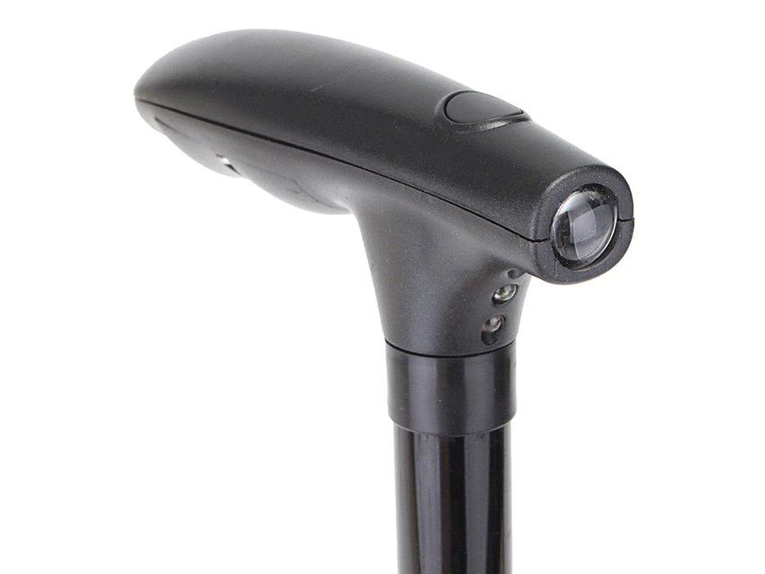Bastone innovativo con luce di sicurezza e allarme.- luce a 4 LED bianca frontale ultraluminosa fino a 15 lumen, con posizioni regolabili- flash d’avvertimento a luce LED ros