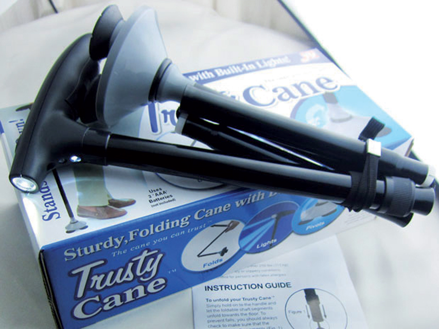 TRUSTY CANE - neroBastone robusto e pieghevole dotato di luce e base ad ampia rotazione con 3 piedini stabili antiscivolo.Altezza regolabile 85-97 cm. Ampia base Ø 9 cm.Asta