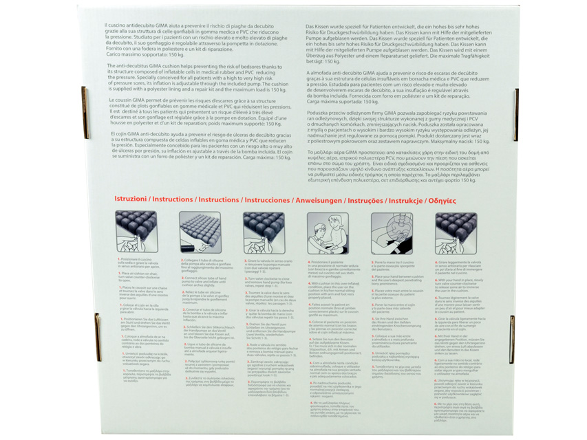 Traduttore Google CUSCINO AD ARIA - 45x45x6 cmPREVENZIONE DEL DECUBITO A RISCHIO DA ELEVATO A MOLTO ELEVATOCon fodera in poliestere, pompa e kit riparazione- singolo compartimento- celle d'ari