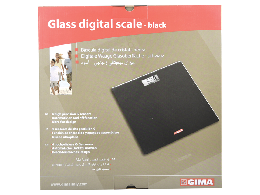 BILANCIA DIGITALE IN VETRO - neraBilancia da bagno elettronica con pedana in vetro temperato di 6 mm di spessore.Ultrasottile: è alta solo 19 mm.4 sensori G di