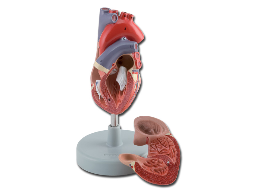Traduttore Google Questo modellino anatomico di dimensioni reali è costituito da due parti. La superficie anteriore del cuore può essere rimossa al fine di mostrare i ventricoli sinistro e des