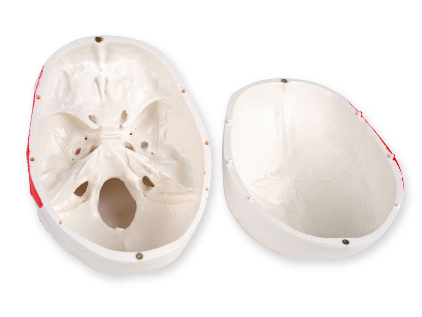 Traduttore Google Riproduzione dettagliata di un cranio umano di dimensioni reali con tutti i dettagli strutturali. La calotta cranica è rimovibile per poter rivelare le strutture interne del