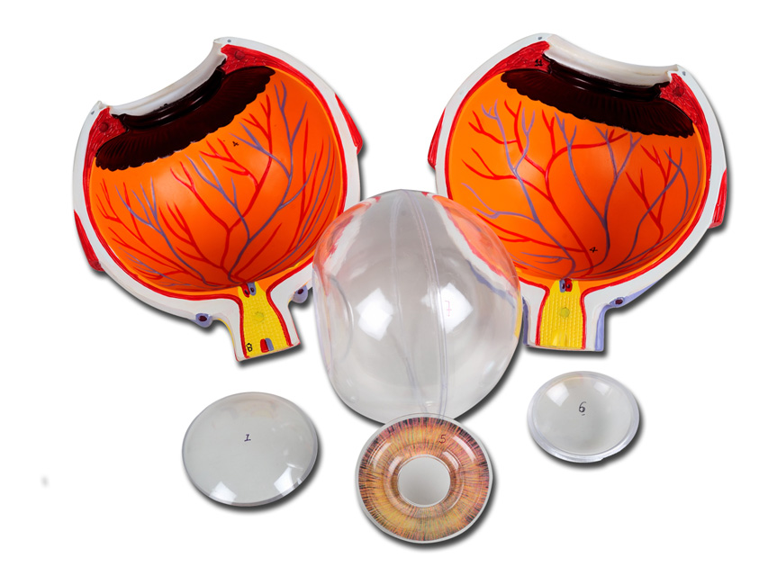 Traduttore Google Modello di un occhio assemblato in 6 parti, dimensione 6X. Linea Value.La cornea, l’iride, la lente e la parte vitrea possono essere rimossi.