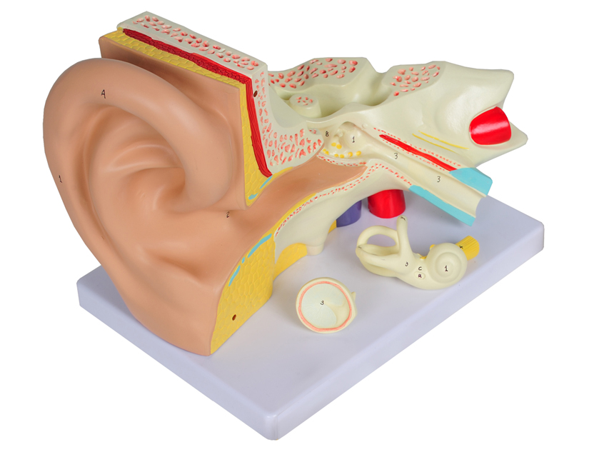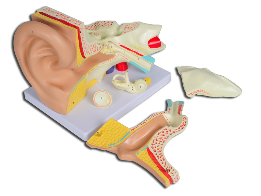 Traduttore Google Modellino anatomico orecchio, 3 parti 3 volte le dimensioni reali. Questo modellino anatomico mostra i dettagli dell’orecchio interno, medio ed esterno. Il timpano con martel