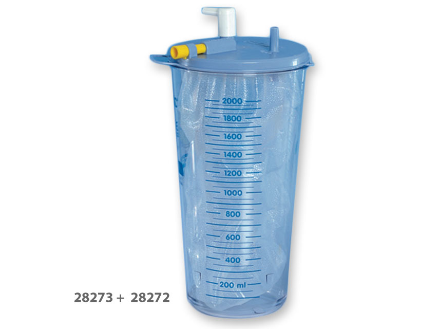 Recipiente monouso 3 l coperchio + sacca - conf. 50 pz.Compatibile con 28274SACCHE MONOUSO FLOVAC®Sacca monouso in polietilene, filtro idrofobico, sistema di t