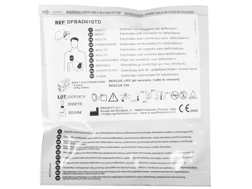 Traduttore Google Una vasta gamma di placche certificate BSI (British Standard Inst.) per pazienti maggiori di 8 anni (25 kg) compatibili con la maggior parte dei defibrillatori presenti sul m