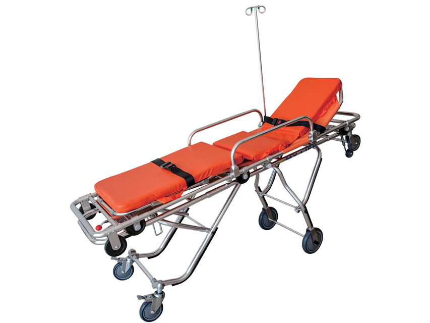 Traduttore Google Barella che può essere condotta da un solo operatore, facile da estrarre e introdurre in autoambulanza.Dotata di sistema per l'apertura automatica delle gambe
