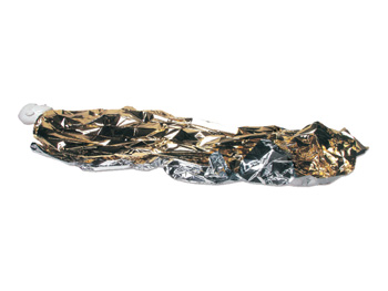 Adatta a proteggere sia dal freddo che dal caldo. L’interno argentato trattiene il calore del corpo, l’esterno dorato riflette i raggi solari.Dimensioni: 160x2