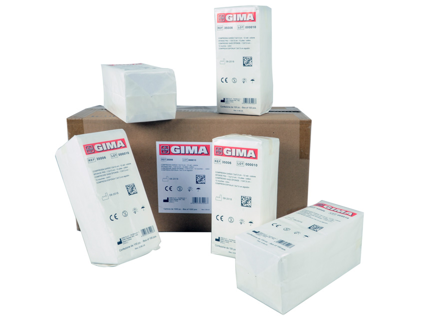 Traduttore Google Compresse garza puro cotone, 20 fili, filato 40/40 piegato e orlato, non sterile, senza filo radiopaco, confezionati in pacchetti da 100 pz.• Cotone• 5 x 5 cm• 16 strati• Non