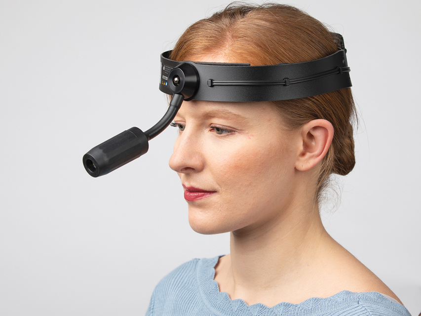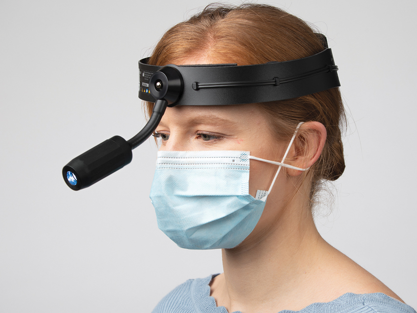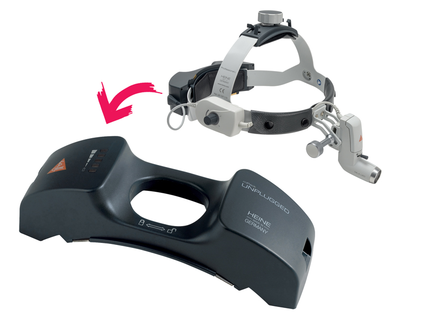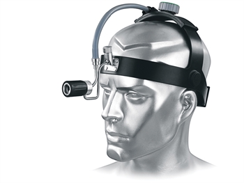 LAMPADA FRONTALE WIDA A FIBRE OTTICHE con cavo in fibra otticaI sistemi d’illuminazione WIDA sono disponibili in due versioni, con fascia cingitesta profession