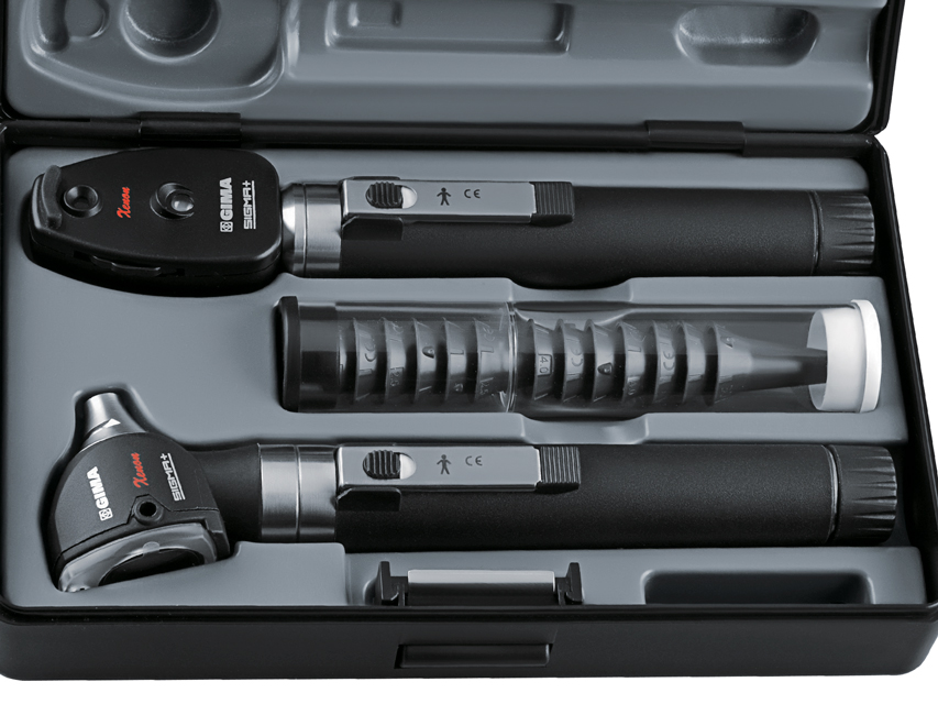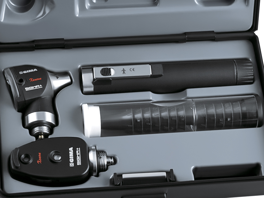 Traduttore Google SET DELUXE OTO-OFTALMOSCOPIO SIGMA F.O. LED 2,5 V - valigetta con 2 manici - neroI set oto-oftalmoscopio sono composti da testina per otoscopio e oftalmoscopio, 2 manici e 14