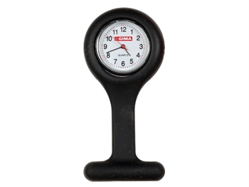 Orologio da infermiere, rotondoColore: neroOrologi da infermiere in silicone con spilla da balia.Adatti per la rilevazione del battito e del polso dei pazienti