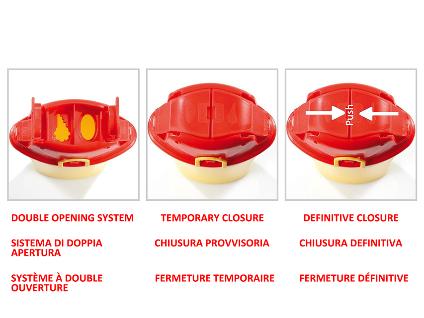 CONTENITORE RIFIUTI TAGLIENTI LINEA PBS• PBS 0,6 l - Ø 10 x 14,5 h cmGamma completa di contenitori per smaltire rifiuti appuntiti o taglienti.Dotati di chiusur