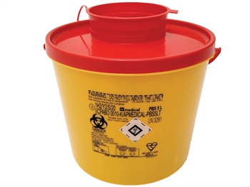 CONTENITORE RIFIUTI TAGLIENTI LINEA PBS• PBS 5 l - Ø 21.4xh 19.5 cmGamma completa di contenitori per smaltire rifiuti appuntiti o taglienti.Dotati di chiusura