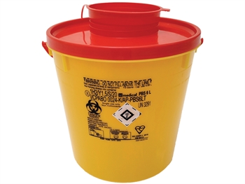 CONTENITORI RIFIUTI TAGLIENTI LINEA PBS• PBS 6 l - Ø 21.4xh 24 cmGamma completa di contenitori per smaltire rifiuti appuntiti o taglienti.Dotati di chiusura pr