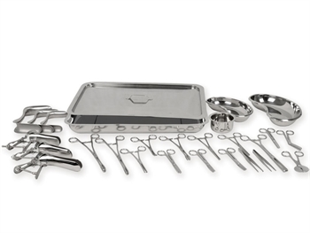 Set per parto, 25 pezzi.Contenuto del set:- Bacinella reniforme 20 cm - media- Bacinella reniforme 25 cm - grande- Catino 150 ml - medio- Forbici episiotomia B