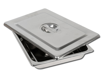 Strumentario in acciaio inox AISI 304 con spessore minimo 0,6 mmVassoio strumenti - bordi angolati - con coperchioDimensioni: 355 x 254 x h 50 mm• Autoclavabil