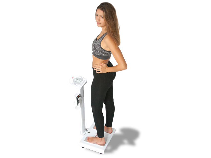 Esame semplice, rapido e non invasivo dell’indice di massa corporea IMC, del grasso, della massa muscolare e dell’acqua.
