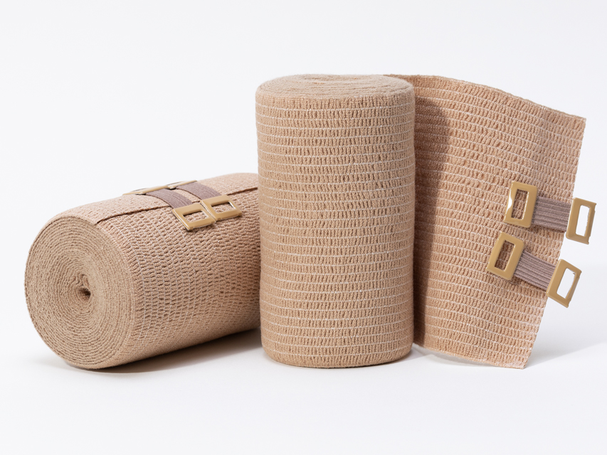 Benda compressiva per uso flebologico. Bendaggio di sostegno e forte compressione costante, ideale per tutti i problemi relativi al complesso sintomatico varicoso, per la prevenzione e la cura di traumi sportivi e da lavoro ed indicato per il sostegno e lo scarico nelle distorsioni, lussazioni, contusioni e fratture leggere.