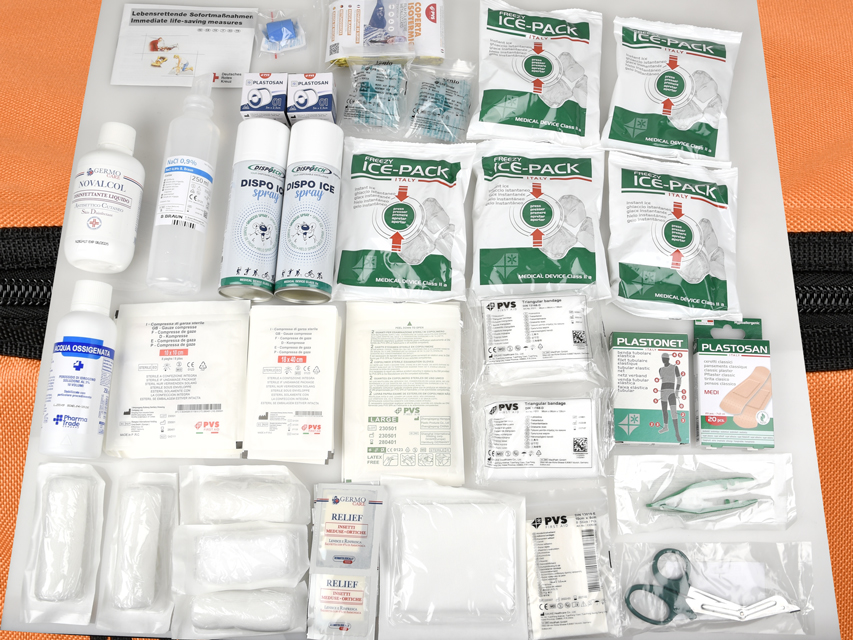 Kit speciale particolarmente indicato per il primo soccorso nei club sportivi (tennis club, piscine, palestre,…).