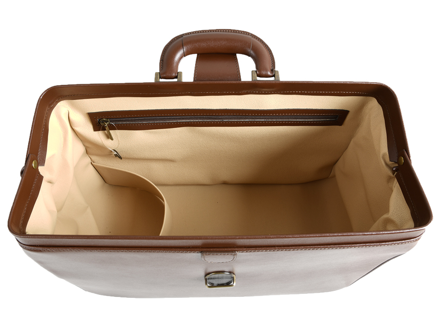 Tasca esterna ed interna con zip, 2 serrature brunite, divisorio trasversale interno di 8 cm, ampio spazio centrale portaoggetti.