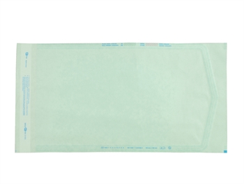 BUSTE AUTOSALDANTI PER STERILIZZAZIONE A VAPORE O ETOPellicola trasparente di poliestere-polietilene verde accoppiato a carta medicale che permette la penetraz