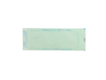 Pellicola trasparente di poliestere-polietilene verde accoppiato a carta medicale che permette la penetrazione del vapore e del gas durante la sterilizzazione. Gli indicatori di vapore e gas cambiano colore quando esposti alla sterilizzazione.