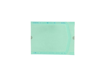 Pellicola trasparente di poliestere-polietilene verde accoppiato a carta medicale che permette la penetrazione del vapore e del gas durante la sterilizzazione. Gli indicatori di vapore e gas cambiano colore quando esposti alla sterilizzazione.