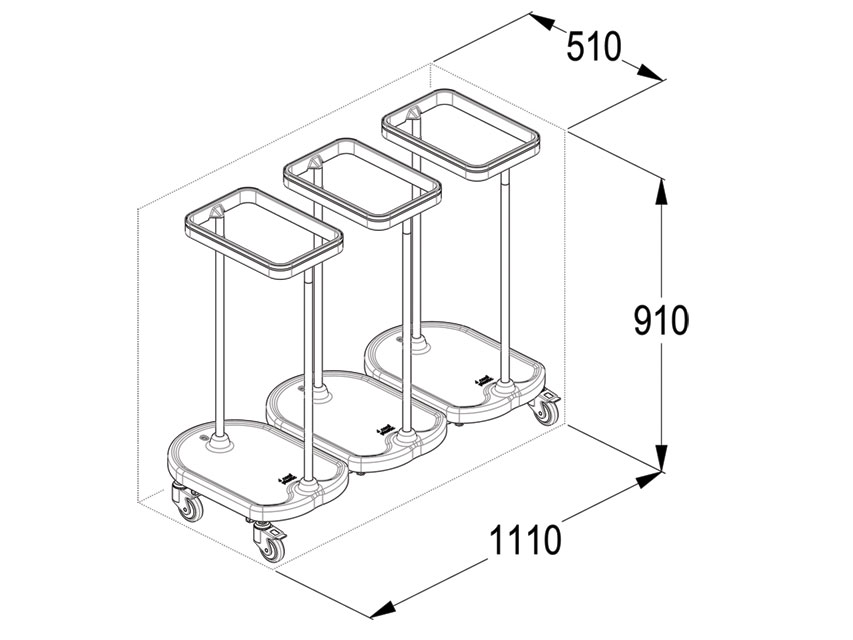 CARRELLO BIANCHERIA – 3 sacchiCarrelli da biancheria con apertura a pedale.Base in plastica ABS con bordi, rigida, robusta, autoportante.Anello fermasacco (35x