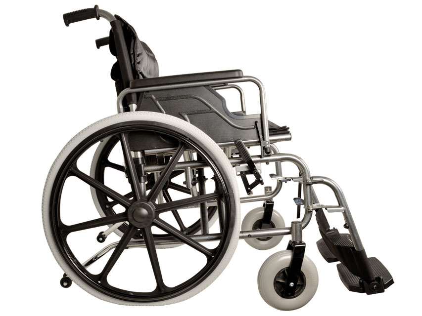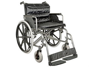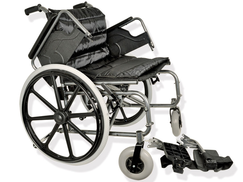 CARROZZINA EXTRA LARGE – seduta 55 cm – tessuto nero- struttura a doppio incrocio- struttura acciaio laccata a polvere- seduta molto ampia 56 cm- braccioli alzabili, imbottit
