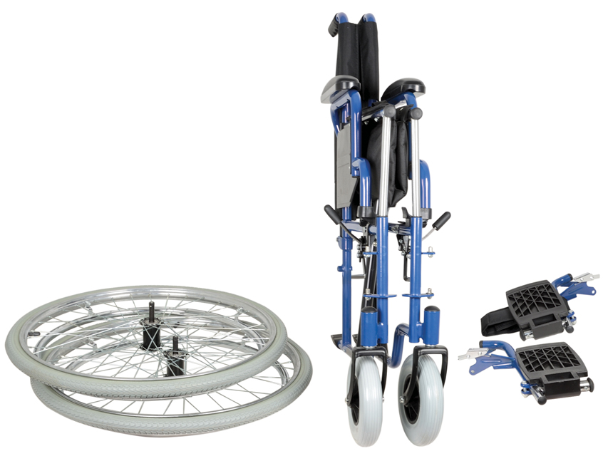– ruote posteriori pneumatiche Ø 61 cm, corrimano in acciaio cromato, rilascio rapido