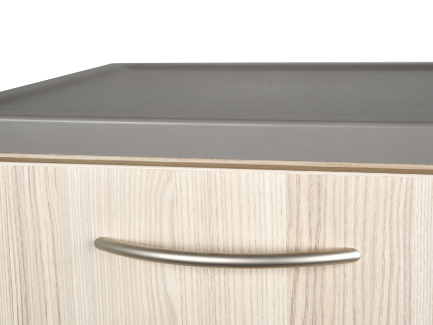 Struttura, cassetto e anta in agglomerato di legno rivestito con materiale melaminico con finitura antigraffio e antiriflesso.