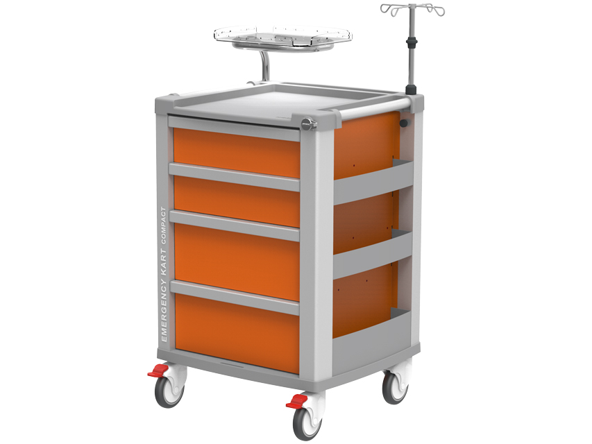 COMPACT KART DI EMERGENZA – 4 cassetti – arancioneDimensione: 654 x 605 x h 975 mmCarrello di emergenza in alluminio di elevata qualità con caratteristiche imp