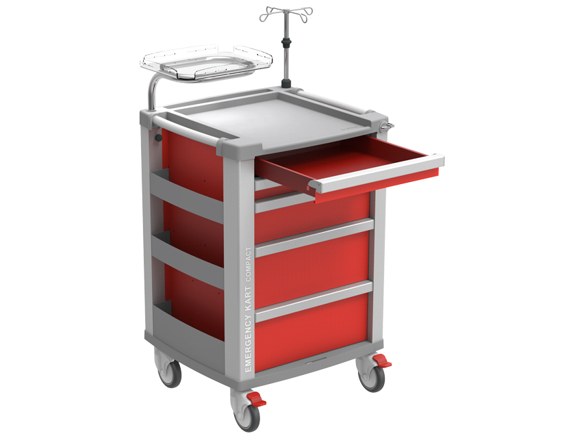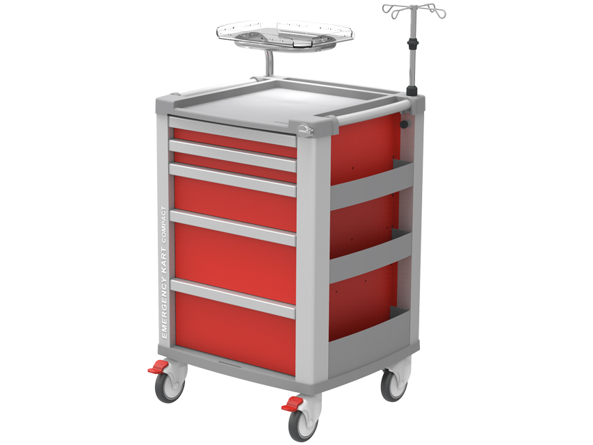 COMPACT KART DI EMERGENZA – 5 cassetti – rossoDimensione: 634 x 605 x h 975 mmCarrello di emergenza in alluminio di elevata qualità con caratteristiche impareg