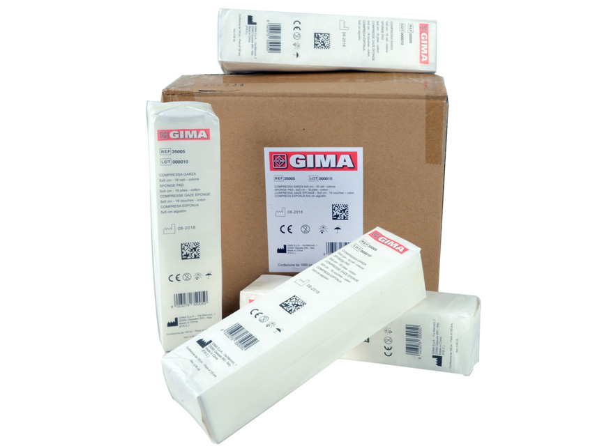 COMPRESSE GARZA COTONE – 5×5 cm – 16 veli – 10 pacchi da 100