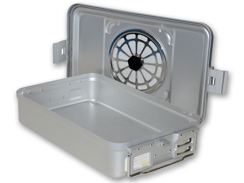 Container standard con due filtri e fondo non perforato.• Modello grande: 580 x 280 mm• Altezza: 100 mm• Fondo non perforato• 2 filtri• Colore: grigioContenito