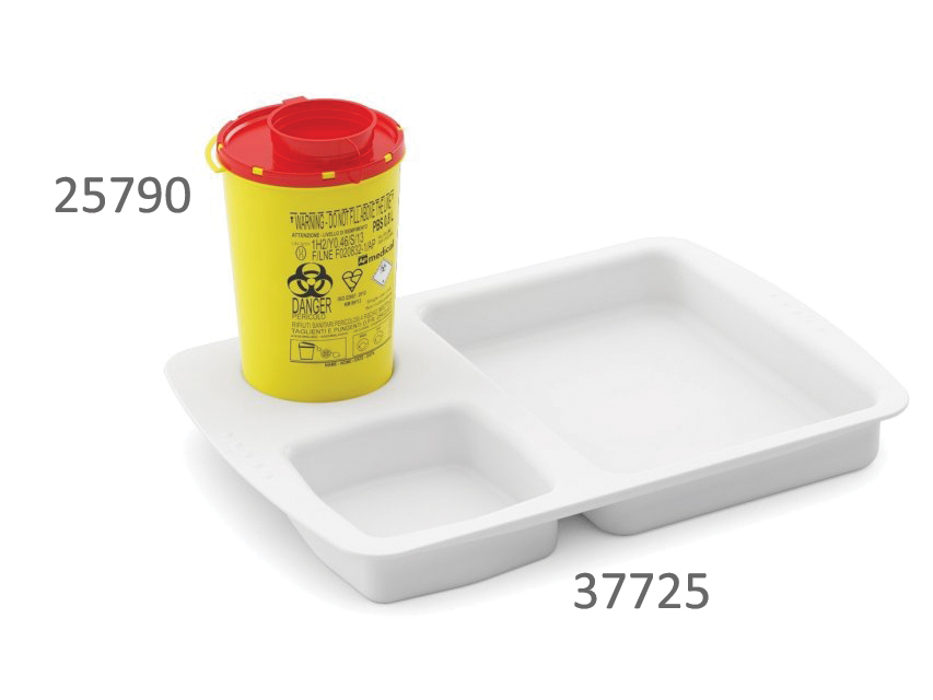 CONTENITORE RIFIUTI TAGLIENTI LINEA PBS• PBS 0,6 l – Ø 10 x 14,5 h cmGamma completa di contenitori per smaltire rifiuti appuntiti o taglienti.Dotati di chiusur