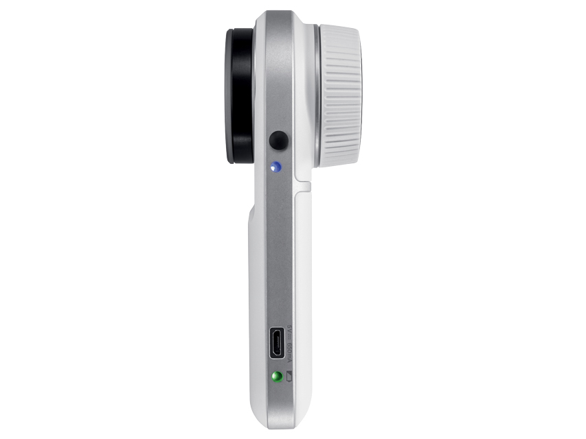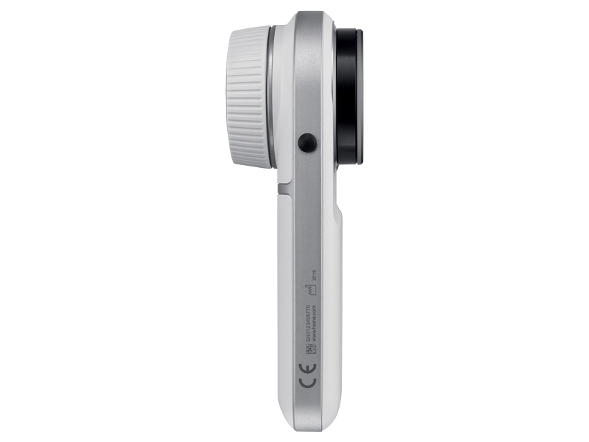 Dermatoscopio tascabile per esame della cute con contatto transitorio non invasivo e senza contatto.