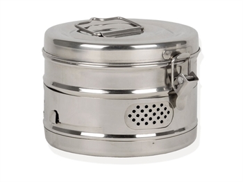 Drum cilindrico per sterilizzazione in autoclave o sterilizzatrice a secco.• Diametro: 150 mm• Altezza: 100 mm• Materiale: Acciaio Inox AISI304Contenitori cili