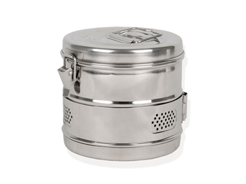 Drum cilindrico per sterilizzazione in autoclave o sterilizzatrice a secco.• Diametro: 150 mm• Altezza: 150 mm• Materiale: Acciaio Inox AISI304Contenitori cili