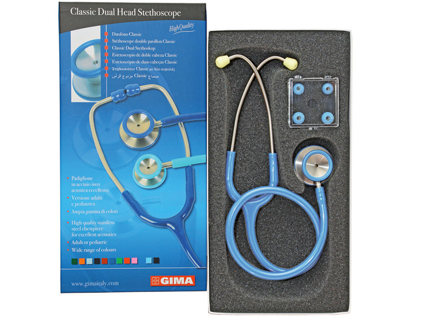 Traduttore Google Duofono Classic adulti – azzurroStetoscopi di alta qualità con padiglione in acciaio inox e archetto in acciaio inox con doppia molla interna ed eleganti tubi in PVC per un’e