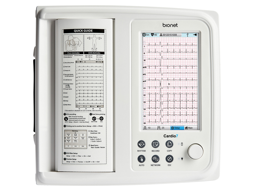 Il nuovo new Cardio 7 è un dispositivo per elettrocardiogramma (ECG) in grado di misurare e registrare 12 canali di segnali cardiaci in pazienti adulti e pediatrici.