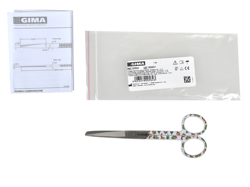 FORBICI CHIRURGICHE IN ACCIAIO INOX.Istruzioni: GB, FR, IT, ES, PT, DE, GR, Arabo.