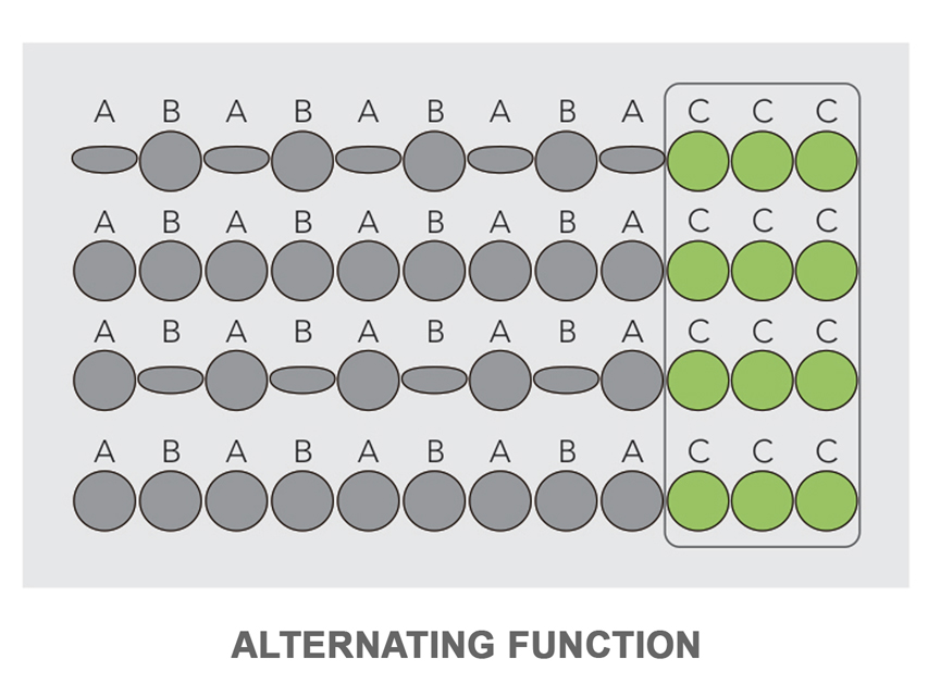 Funzione cuscino: gli elementi presenti nella posizione di testa non vengono alternati, per dare maggiore confort al paziente.