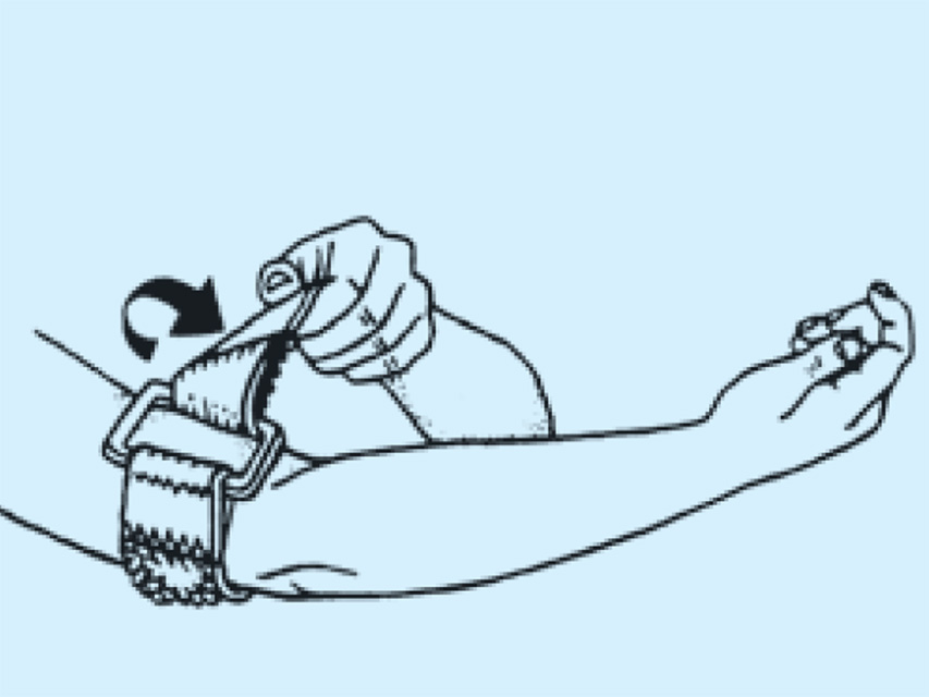 Velcro con fibbia a “D”: laccio emostatico in nylon applicabile con una sola mano, anche dallo stesso paziente, tramite ?bbia a “D” in plastica