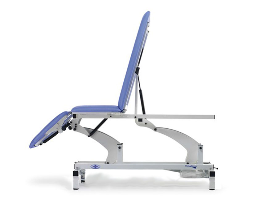 Caratteristiche: tre sezioni mobili regolabili con molla a gas. Il lettino può rapidamente essere posto in posizione “flessa”, “relax” e “trendelenburg” anche con il paziente sdraiato.