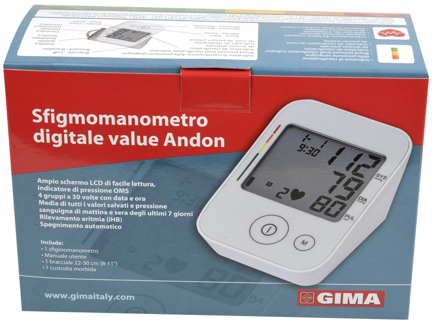 Traduttore Google SFIGMOMANOMETRO ANDON- ampio schermo LCD di facile lettura, indicatore di pressione OMS- 4 gruppi x 30 volte con data e ora- media di tutti i valori di pressione misurati e s