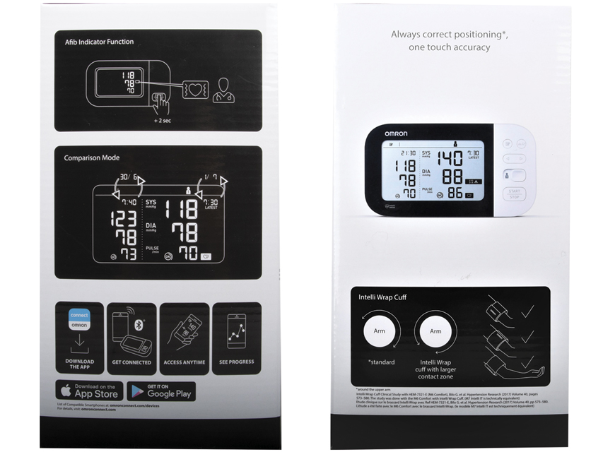 • Tecnologia Intelli Wrap (precisione a 360°: misurazioni accurate da qualsiasi punto della circonferenza del braccio)