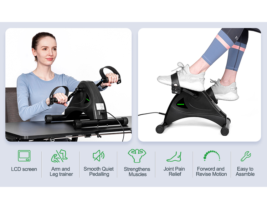 Pedaliere compatte per allenamenti cardiovascolari moderati. L’uso regolare stimola la circolazione sanguigna e aumenta la forza muscolare. Posizionabili su un tavolo per esercitare le braccia o sul pavimento per allenare le gambe da seduti.